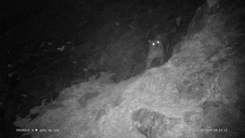 近日,四川三打古自然保护区工作人员在整理红外相机数据时发现,其中的两台相机分别于2020年12月2日、12月24日在保护区核心区内拍到了国家一级保护动物雪豹。