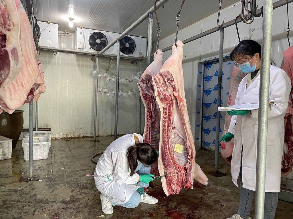 四川省畜牧科学研究院科研人员在做肉品质测定试验