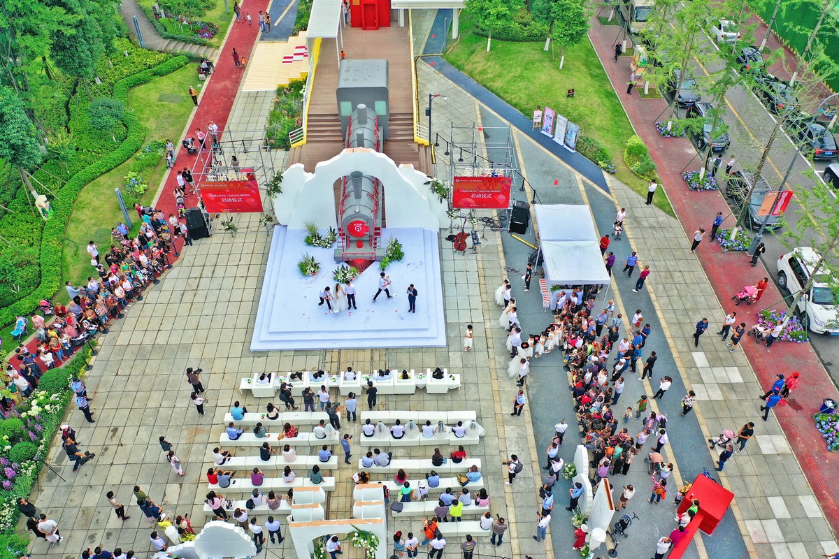 5月20日上午,在成都市成华区二仙桥公园鸟语花香的氛围中,十对新人盛装登台举行集体婚礼,当天二仙桥公园婚姻登记中心正式开放,一旁的“幸福家”婚姻家庭辅导教育示范点、心跳博物馆也正式落成。