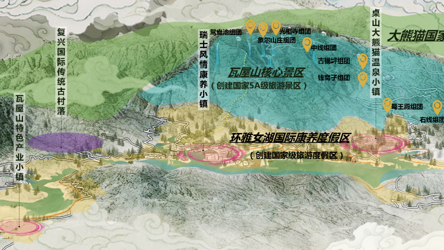 据悉,“示范区”在保留中国风味的同时,将增加大量的瑞士元素,并将以核心景区创建国家5A级旅游景区、环雅女湖创建国家级旅游度假区为抓手,着重打造“三镇一村”(相大坪·桌山温泉小镇、雷坪·瑞士风情小镇、瓦屋山·特色产业小镇、复兴·国际传统古村落),以此来推动洪雅一二三产业融合发展,带动消费和经济增长。