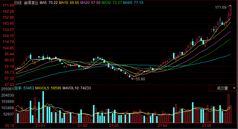 舍得酒业报171.69,股价刷新历史新高;水井坊报110.81,逼近今年4月创下的114.77的历史高点。