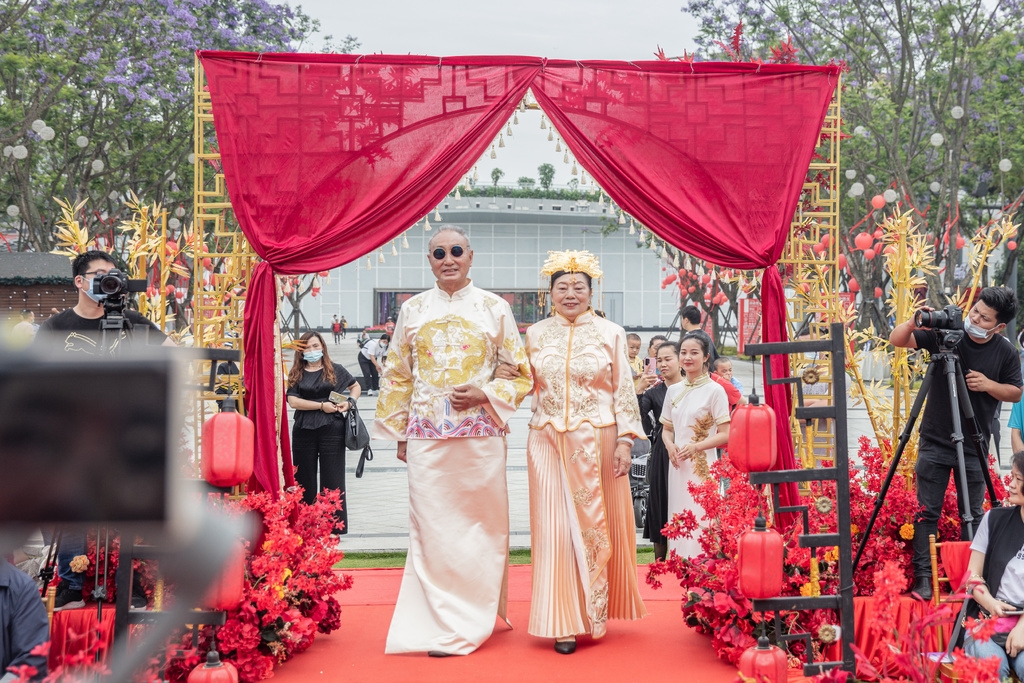 活动现场,通过开展室外中式集体颁证活动,鼓励新人邀请亲朋好友共同见证,使新人在庄重神圣的法律殿堂宣告合法婚姻缔结,提升了婚姻仪式感,倡导了简约适度的婚俗礼仪;通过“中国婚礼”节目表演,在节目中融入优秀中华文化和传统中国婚俗元素,弘扬了积极向上的婚姻理念,培育文明向上的婚俗文化;通过金婚夫妇传授“幸福婚姻密码”,讲述中国式好婚姻、好家风故事,耳濡目染传承良好的家风家教。