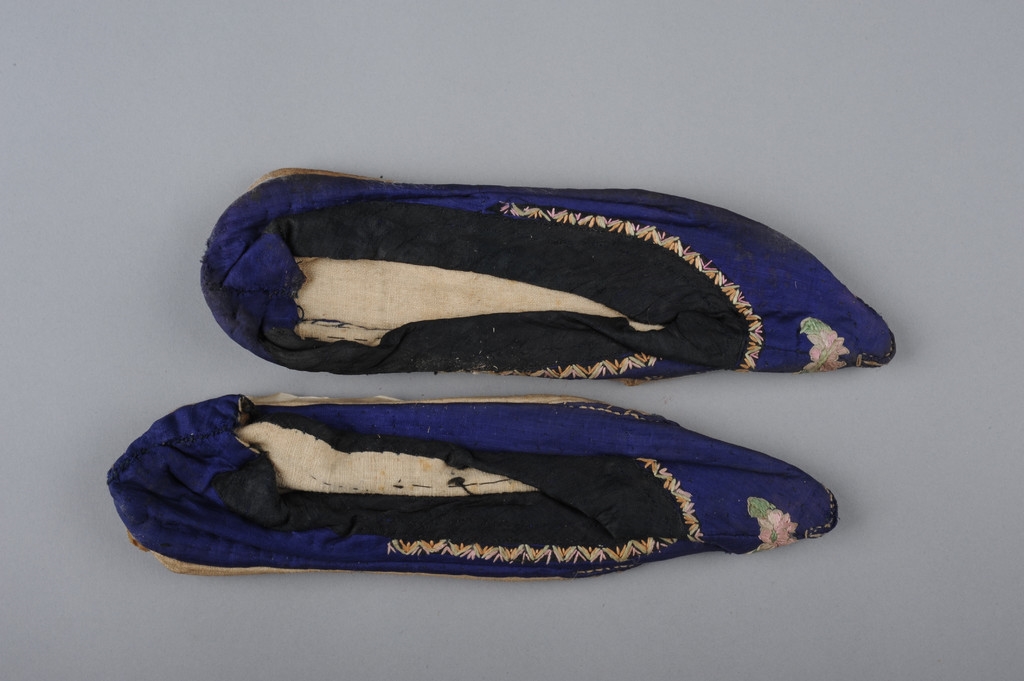 一双蓝绸绣花鞋