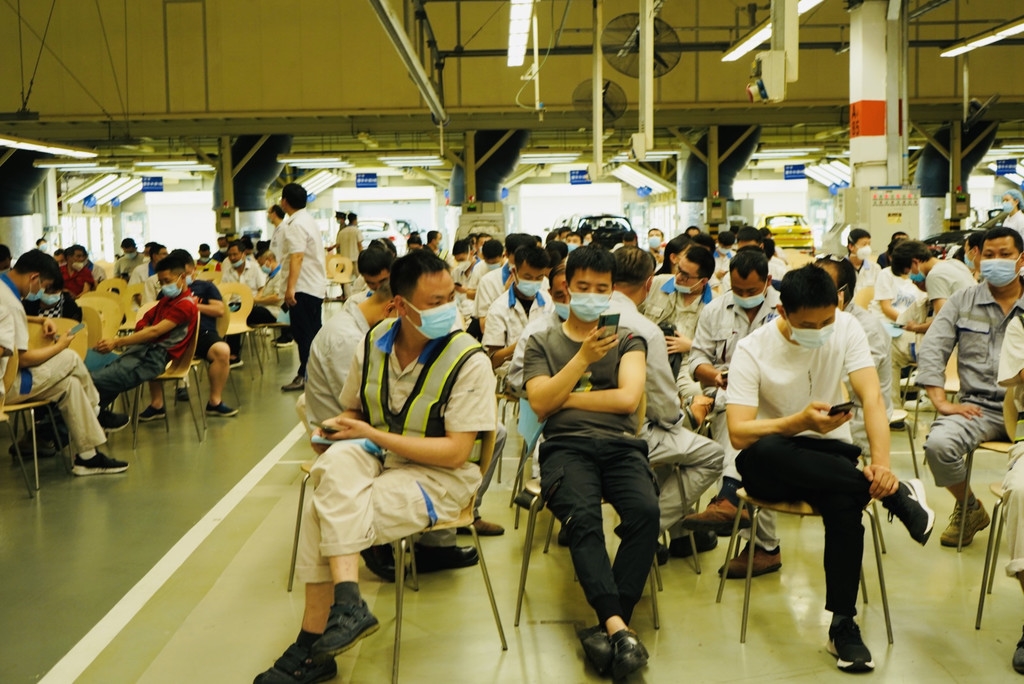 到5月20日16时30分,一汽-大众成都分公司总装车间内12个接种单元同时接种,安全高效地在两天内完成全公司超过6000人新冠疫苗接种,与此同时,一汽-大众成都分公司2000余台的日产量未受影响,做到“防疫生产两不误”。