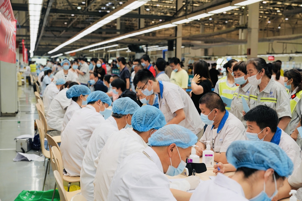 接种新冠疫苗同时,公司2000余台的日产量未受影响,做到“防疫生产两不误”。魏冯 摄