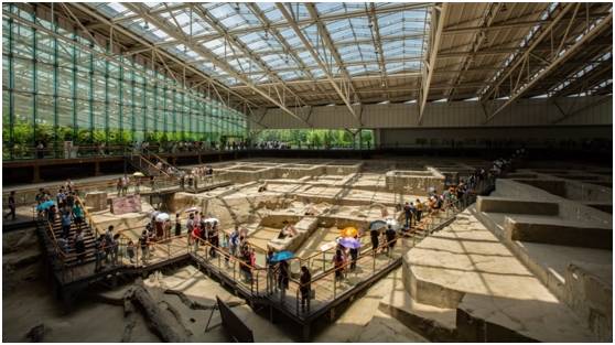 “文明遗址、遗迹的综合展示在全世界都是不多见的,比较典型的仅中国的兵马俑,日本北海道的绳文遗址群以及古罗马的部分遗址等少数几处,更多的是将文物与遗迹分离开,将前者单独展示,原因也正在于遗迹就地保护的困难较高。”金沙遗址博物馆馆长朱章义介绍,金沙遗址博物馆不仅把考古挖掘现场原状保存下来,让游客可以看到第一手的遗址信息,同时还复原了遗址周围的自然生态环境。作为城市公园和考古馆的结合,这项创新使得金沙遗址博物馆入选全国首批考古遗址公园,但同时要承担的是遗迹保护的攻关和创新。