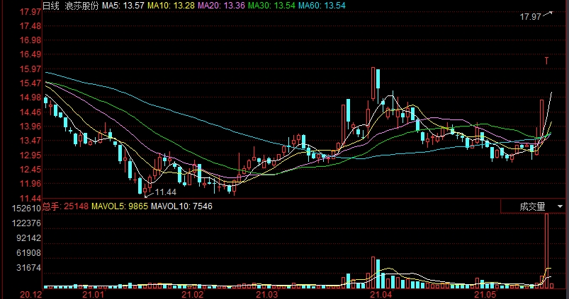 本周资本市场上,川股中表现最为突出的不是刚刚“摘帽”的舍得酒业,也不是连续两日涨停的水井坊,而是拿下“三连板”的浪莎股份。期间股价从5月18日收盘价13.50元,上涨至17.97元,累计涨幅达到33%。