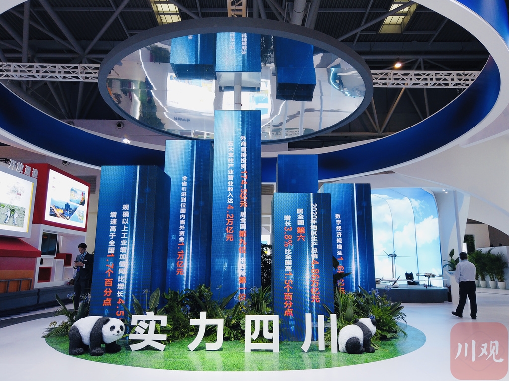 四川馆会展馆面积598平方米,展陈内容分为“实力四川、开放四川、创新四川、大美四川”四大篇章,通过视频、图片、文字、产品等多种形式,全面立体展示四川特色、巴蜀元素,反映四川经济社会发展取得的巨大历史性成就,宣传独特投资优势和良好营商环境,充分彰显成渝地区双城经济圈战略的四川担当。