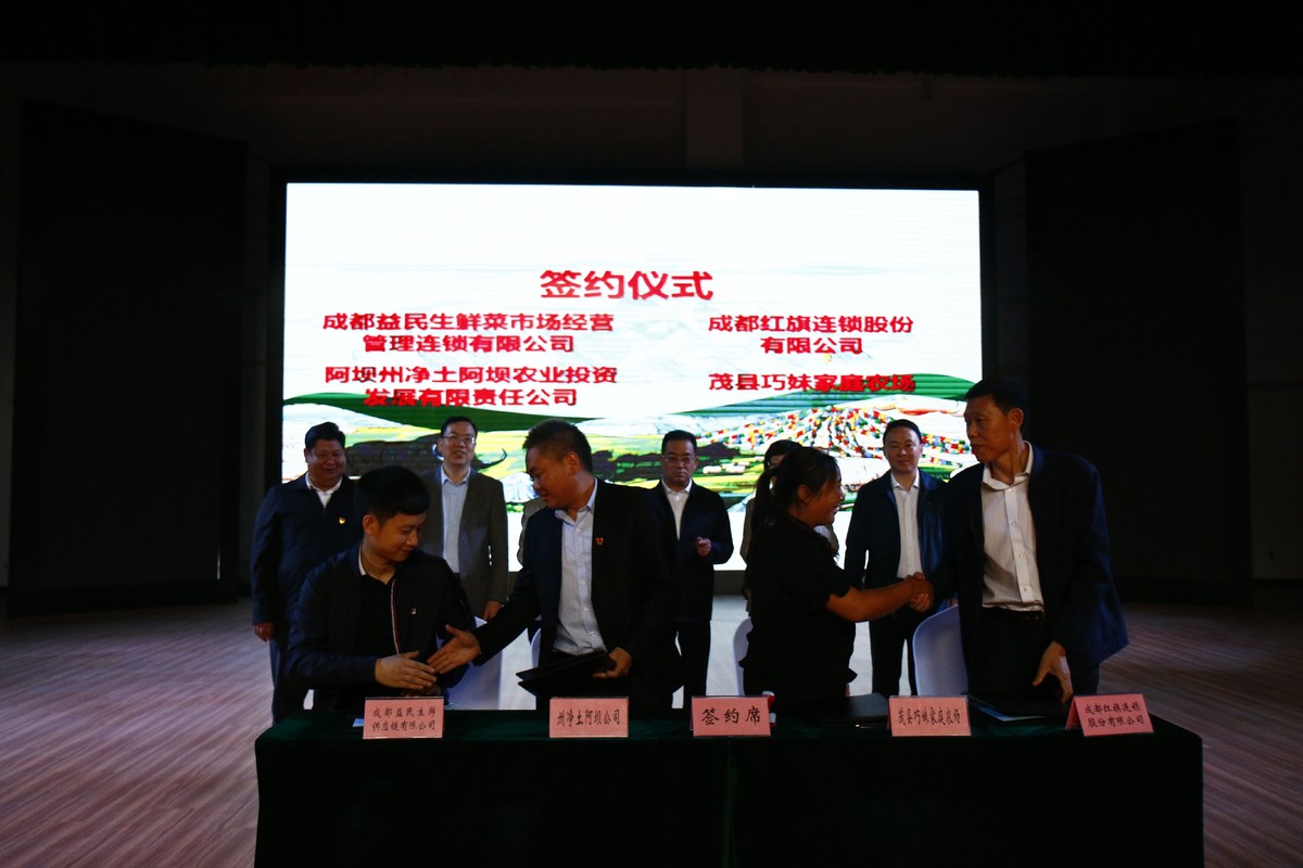 购需对接活动中,成都益民生鲜菜市场经营管理连锁有限公司、成都红旗连锁股份有限公司、阿坝州净土阿坝农业投资发展有限责任公司、茂县巧妹家庭农场等8家企业、合作社、家庭农场共签订1.2亿元的农产品购销合同。
