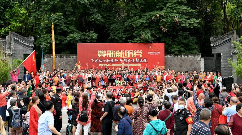 “雄伟是山的梦,宽阔是海的梦。蔚蓝是天的梦,幸福是百姓的梦……”“我们走在大路上,意气风发斗志昂扬,共产党领导革命队伍,披荆斩棘奔向前方……”一首首歌曲在公园保路纪念广场回荡,参加本次活动的人们高唱这些红歌,展现人民对于党和国家的无限感激和烈烈深情,唱响心中感恩之情。