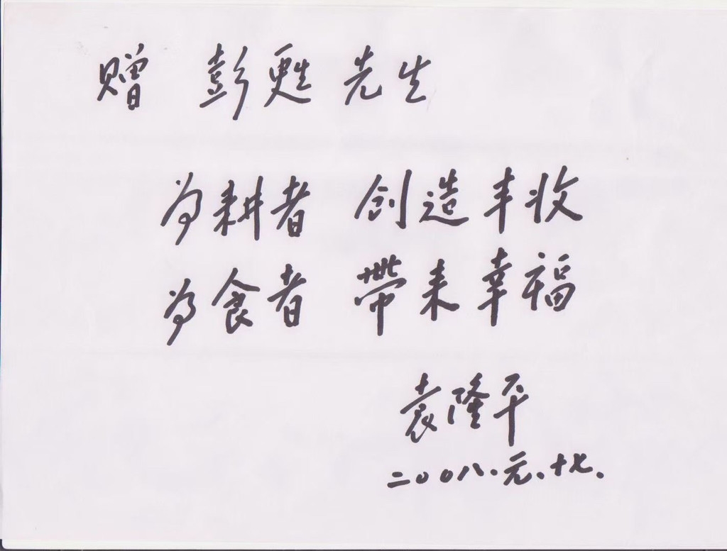彭甦说,他迄今最后一次见到袁老,是在海南的杂交稻繁育基地,两人还交谈了杂交稻的学术问题。最后一次联系袁老,也是牛年春节之前,当时,袁老还给彭甦致以春节问候。他记得袁老当时精气神很好,且谈吐清晰,完全看不出是九旬老人。