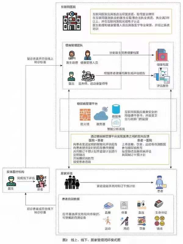 肖新华教授介绍称:“互联网医院糖尿病线上管理既具有互联网医院慢病管理的共性,又包含糖尿病管理的特色。糖尿病线上管理可以借助智能血糖仪、智能血压计、智能手环等智能设备对患者进行全方位数据监测,同时打破了原有线下时间和地域的壁垒,患者足不出户就可以接受优质的医疗服务,医护人员也可以借助智能信息技术、利用碎片化时间更加便利地对患者进行全生命周期管理。因此,集智能性、高效性、便利性、可及性、持续性特征为一体的线上管理模式,对于线下诊疗具有很好的延伸作用。”