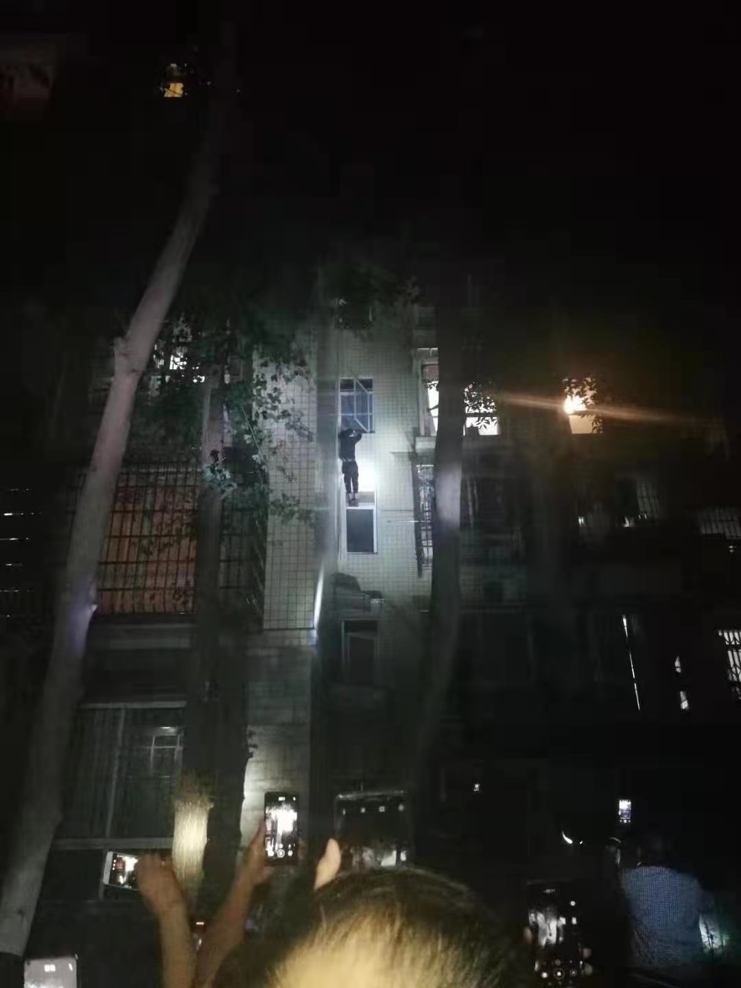 该男子被小区住户发现后,逃跑行径败露,便出现了视频中的场景。“当天,大家为了抓小偷都是齐心协力。”内江市公安局治安管理支队政委杨婷介绍,住户发现窃贼攀爬后马上报告小区保安,小区的“甜城义警”、热心市民也都自发参与,有的人堵住小区出口,有的负责用灯光对准小偷防止其逃跑。僵持20分钟左右后,警察和热心群众“里应外合”将这名小偷给抓住。