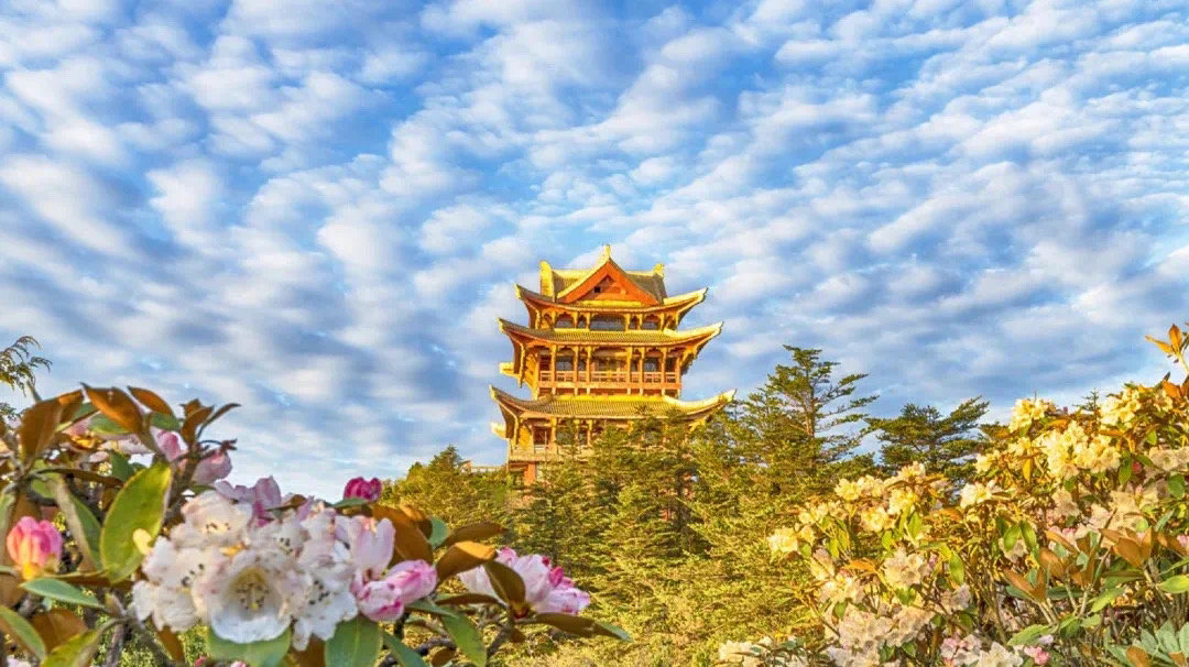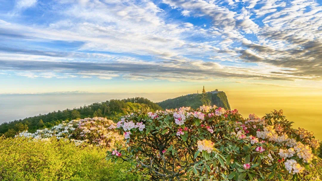 万佛顶景区植被丰茂、古树参天原始景观保存完好。峨眉山最古老的原始杜鹃林也在此处,登顶可观金顶四大奇观:日出、云海、佛光、神灯。云雾似海,时波涛翻滚,时又风平浪静。变幻无穷,奇妙无比。(峨眉山景区供图)