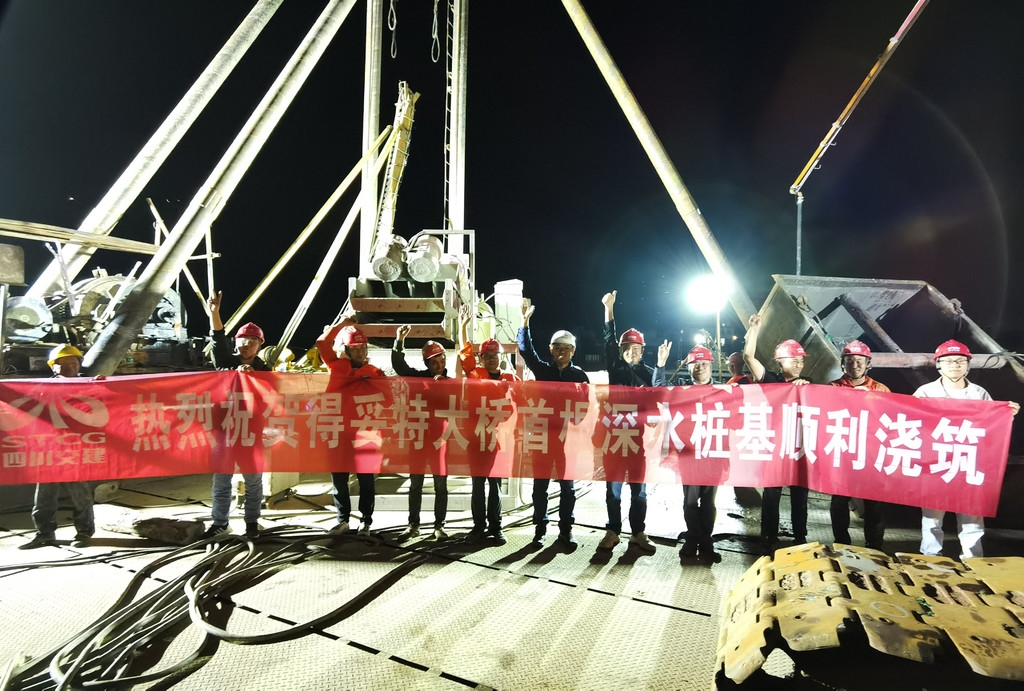 5月22日,从四川交投藏高泸石高速建设一线传来消息:当天凌晨0时15分,泸石高速控制性工程得妥特大桥水中首根桩基完成混凝土浇筑。