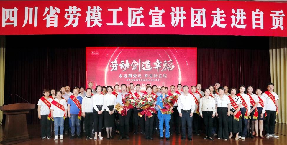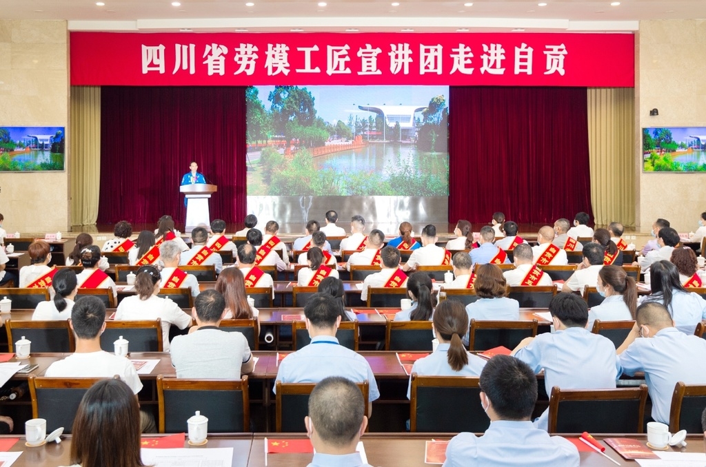 5月22日记者从自贡市总工会获悉,由省总工会主办、自贡市总工会承办的“劳动创造幸福”——“永远跟党走 奋进新征程”四川省劳模工匠宣讲团日前走进自贡,3位劳模工匠现场讲述他们爱岗敬业、匠心筑梦、奋斗圆梦的故事,赢得了台下听众的阵阵掌声,更引起了大家的强烈共鸣。
