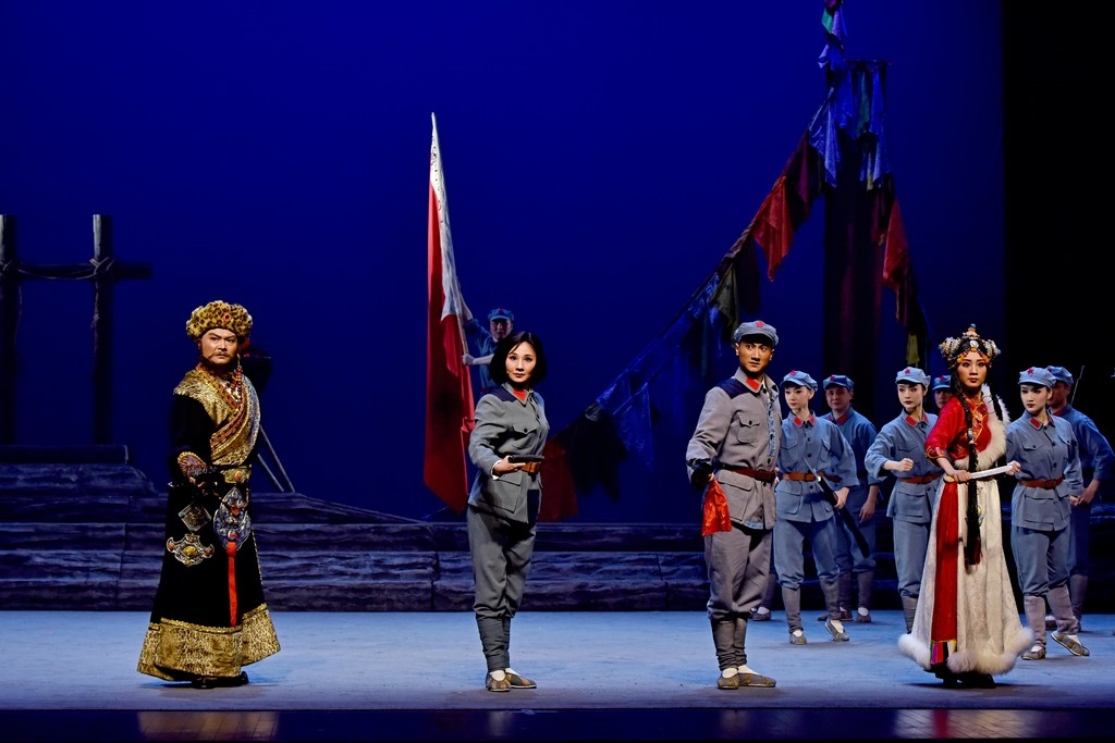 红色经典《金沙江畔》高举爱国主义伟大旗帜,以深刻、细腻的笔触塑造以张秀、金明等为代表的红军英雄群象,艺术再现红军长征途中那段感人肺腑的故事,着力表现中国共产党领导下的中国工农红军与金沙江畔涉藏地区人民深厚的军民鱼水情,塑造红军英雄群象,弘扬优良传统,传颂长征精神,宣讲铁的纪律,讴歌党的领导,再现汉藏军民鱼水深情,以喜闻乐见的川剧艺术形式,审美表达不忘初心、砥砺前行的时代强音。(图片由四川省川剧院授权提供)