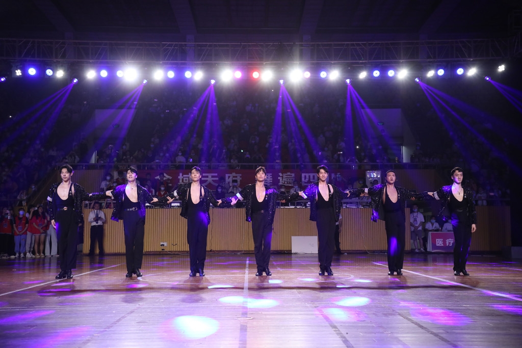 四川省体育舞蹈(国标舞)协会,自2019年起致力于开幕式文化建设。本次赛事高质量的开幕式表演,主题呈现鲜明,节目紧扣时尚,让观众大呼过瘾。曾在《舞蹈风暴》中惊艳众人的中国体育舞蹈国家队队员侯垚,带着平均年龄不足二十岁的零零后“男团”献上两支舞蹈《寻梦》和《纯粹》,惹得现场尖叫连连。年轻人自信的笑容,干净的动作,让所有人看到了体育舞蹈代代相传的力量。