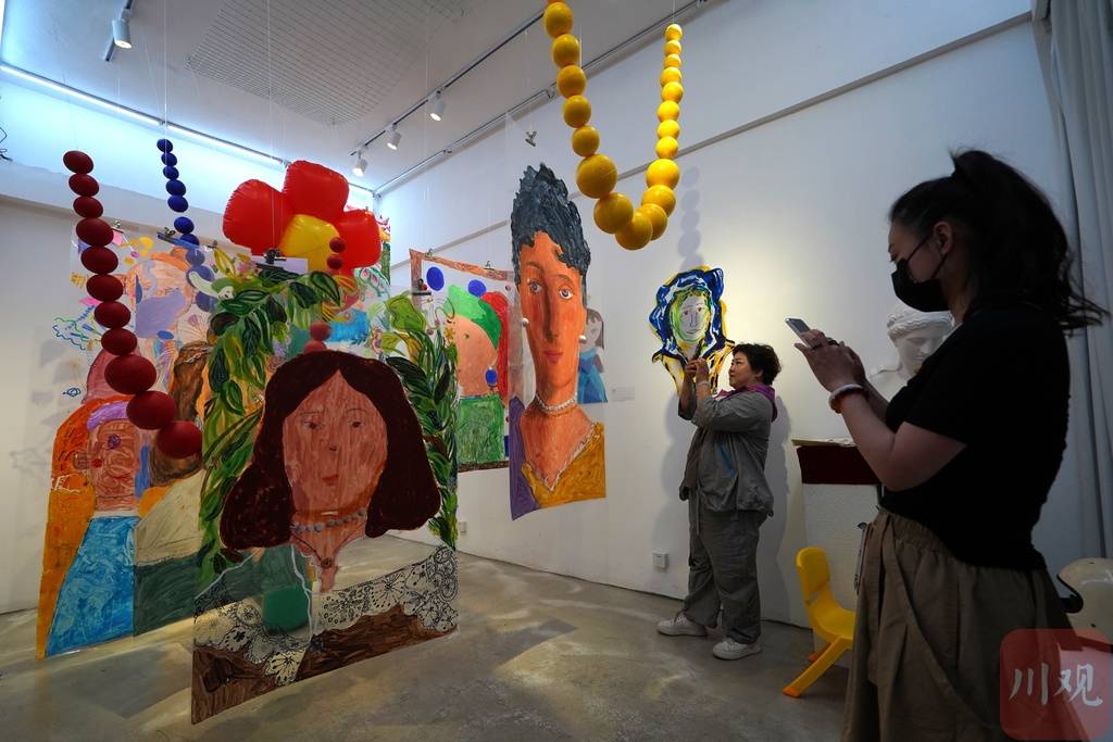 5月19日,成都市福字街一饰品店内正在举行8位小朋友的小型画展。