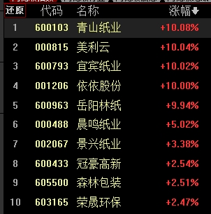 最近,文化用纸、包装用纸纷纷涨价,引发行业关注。“纸厂纷纷停产”话题还一举冲上了微博热搜第二。在A股市场上,造纸板块涨幅靠前,宜宾纸业、青山纸业、美利云和依依股份等个股纷纷涨停。