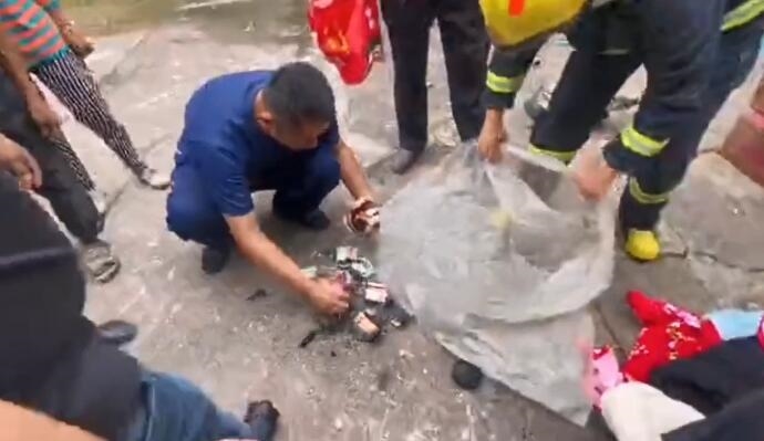 为立即搜救出藏于柴堆的数万元现金,防止余火复燃,两名消防员在水枪的掩护下,对仍冒着阵阵高温热气和丝丝红光的柴堆进行了翻找。最终,两万三千元现金被成功找到,并交给事主。