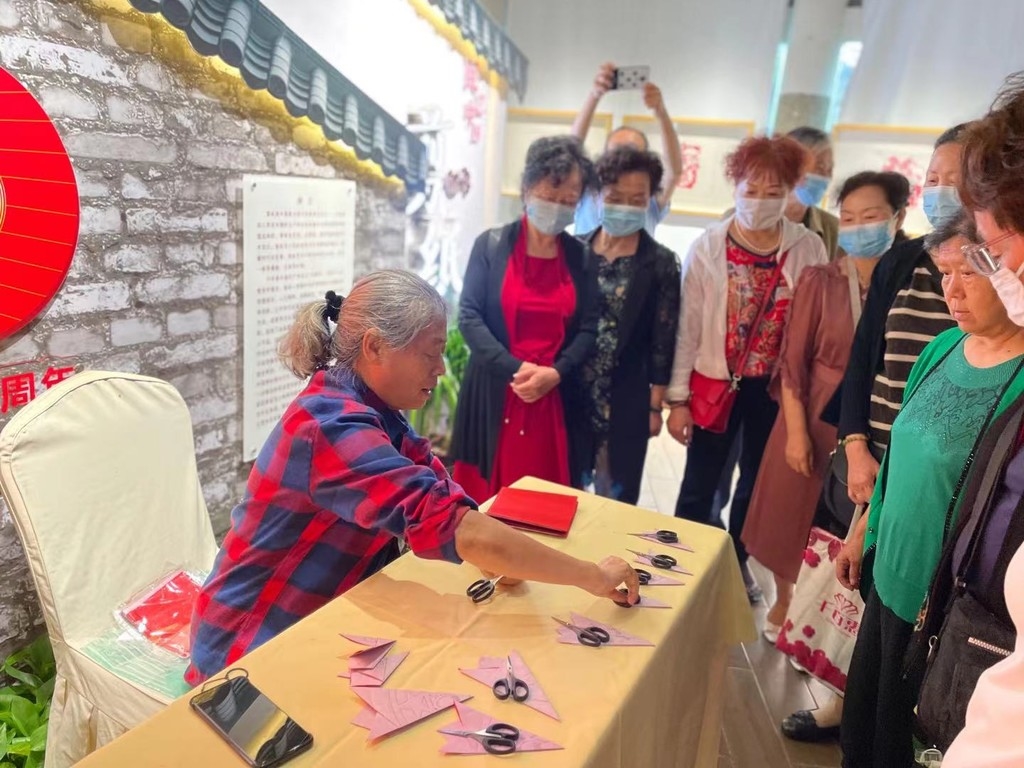 “太有意思了,一张纸通过折叠裁剪,转眼就成了一幅寓意丰富的剪纸作品。”正在学习的观众兴致勃勃地分享。