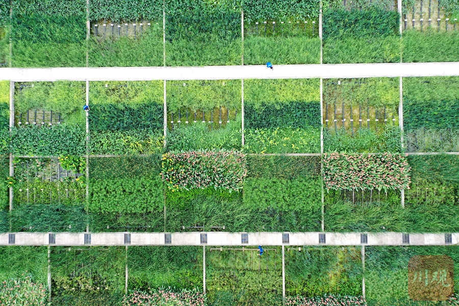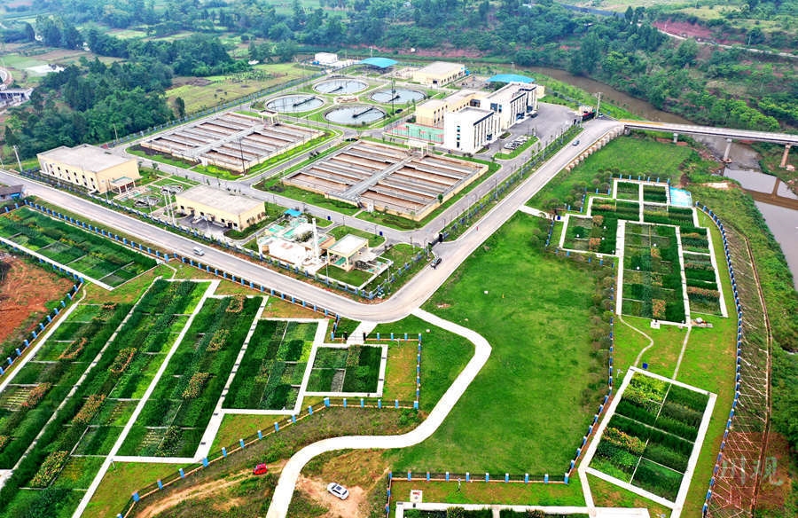 5月24日,航拍仁寿县生活污水处理厂及配套生态湿地。近年来,仁寿县在实现污水处理全覆盖的同时,在每个污水处理厂(站)配套建设人工生态湿地。通过种植风车草、美人蕉、香蒲等水生植物,不但改变了环境,使污水变成了清水,不仅可以直接排入河中,还能直接用于农业生产灌溉。
