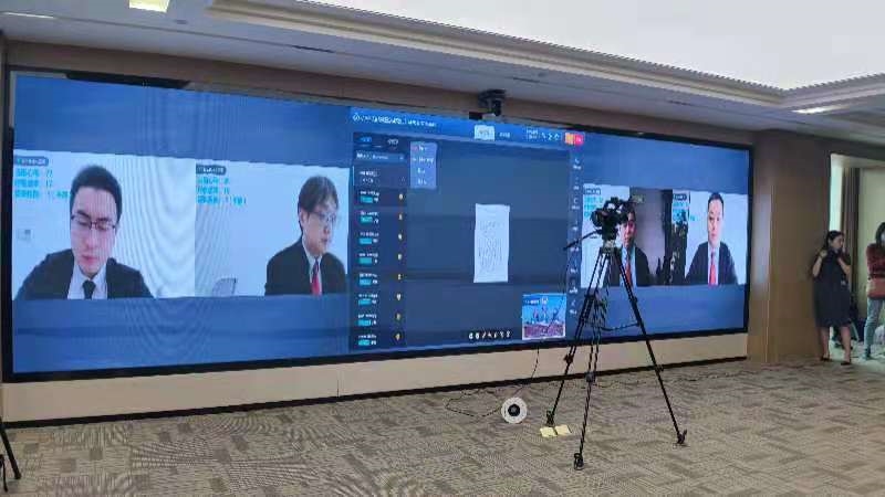 记者在现场看到,与一般的法庭开庭不同,互联网法庭的审判席对面有三块电子屏幕,未设立书记员的座位。据了解,三块电子屏幕的作用是在庭审中提供远程视频共享技术。当庭审开始的时候,双方当事人和诉讼人员均可以通过两边的屏幕视频远程参加审判,语音识别系统即可自动形成庭审笔录。
