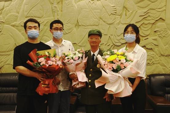 同学们首先集体观看了革命伤残军人业余演出队的影像记录片,回顾革命伤残军人的先进事迹,被他们革命伤残军人们身残志坚、自强不息的大无畏革命乐观主义精神深深地感染。随后,同学们在会客厅围坐在一级伤残军人、全国模范退役军人涂伯毅老战士身边,集体聆听其英勇负伤的经过及受伤后克服精神和身体困难,以崭新面貌投入到新的学习和工作中的光辉事迹。聆听完后,同学们向老战士献上了鲜花,与老战士合影留念。