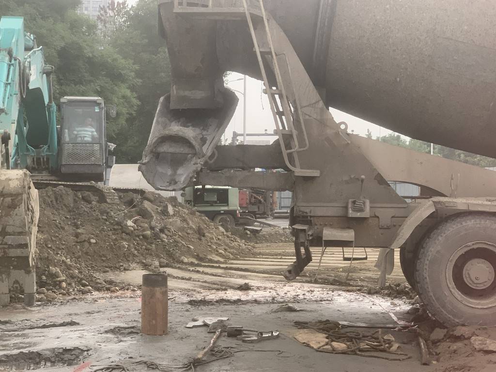 5月25日上午,四川在线记者来到市政施工地点,这里大致位于双流区珠江路和临港路四段交界处。现场,一辆水泥罐车已经到位,正准备开始灌注。从现场看,凿穿面积不大。