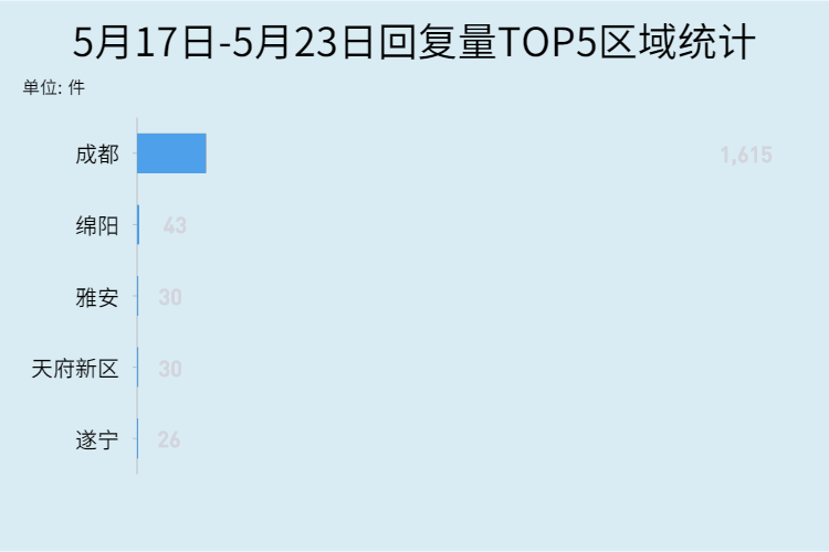 截至5月23日零时,根据留言量和回复量的比值,上周排名靠后位的区域为: