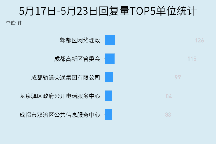 从具体接件转办单位来看,全川转办回复量排名上前五的单位分别为: