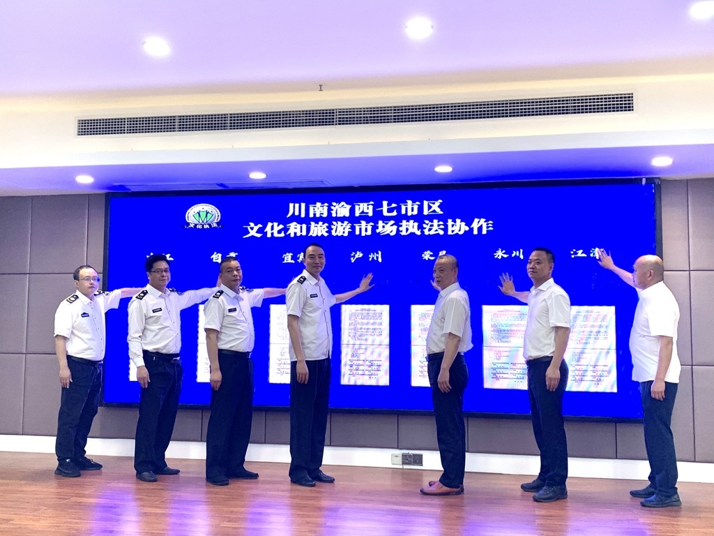 助力巴蜀文化旅游走廊建设高质量发展,5月26日,泸州市、宜宾市、自贡市、内江市,重庆市江津区、永川区、荣昌区共同签署了《川南渝西七市区文化和旅游市场执法协作备忘录》,将重点围绕执法队伍建设、案件协查协办、投诉举报协作处理、执法信息互通共享等方面,开展七市区文化旅游市场执法协作。