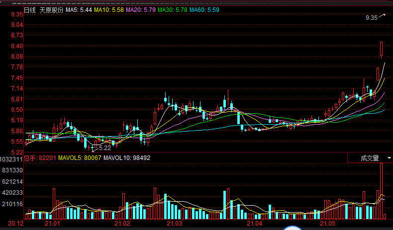 在被机构密集调研的同时,天原股份在资本市场上的表现也十分不俗。截至5月26日收盘,该公司已经连续三天涨停,股价报9.35元。