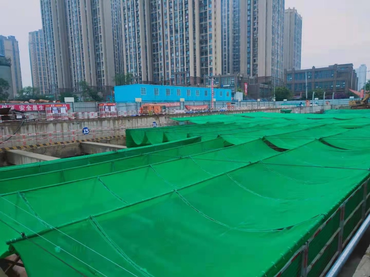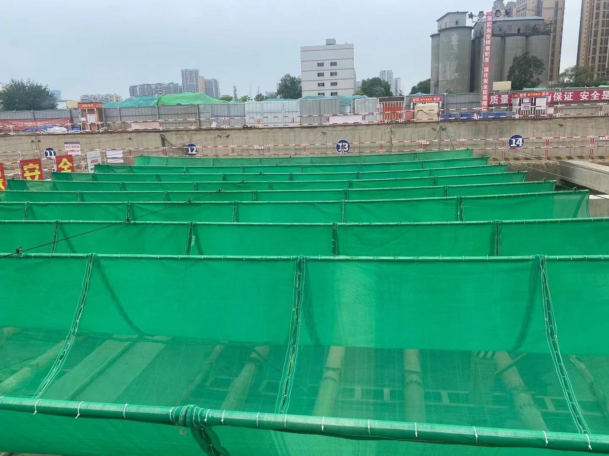 通常,轨道交通站点施工现场,基坑上方是无遮挡的。成都市住建局相关负责人告诉记者,这些覆盖在基坑上方的巨幅绿幕,是成都市住建局率先在轨道交通站点进行试点以安全、经济、耐久、整洁、环保为建设目标打造的 “深基坑防尘幕系统”,该系统能够有效控尘,同时具有一定的降噪作用。成都也因此成为继北京、青岛后第三个引入防尘幕防尘管控措施的城市。