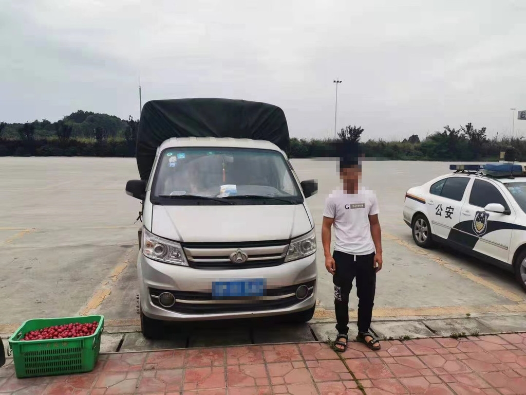 5月26日16时35分许,高速公路一支队十二大队民警在开展视频巡查时,发现在成都第二绕城高速公路内环64公里处有一辆轻型货车停在应急车道内,仔细一看,发现车头处有一男一女两人正在摘路边的李子,可能觉得这里的李子有点多,他们还特意从车上拿出了一个蓝色的大筐来装。