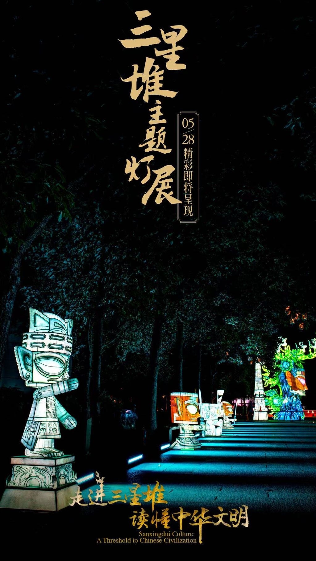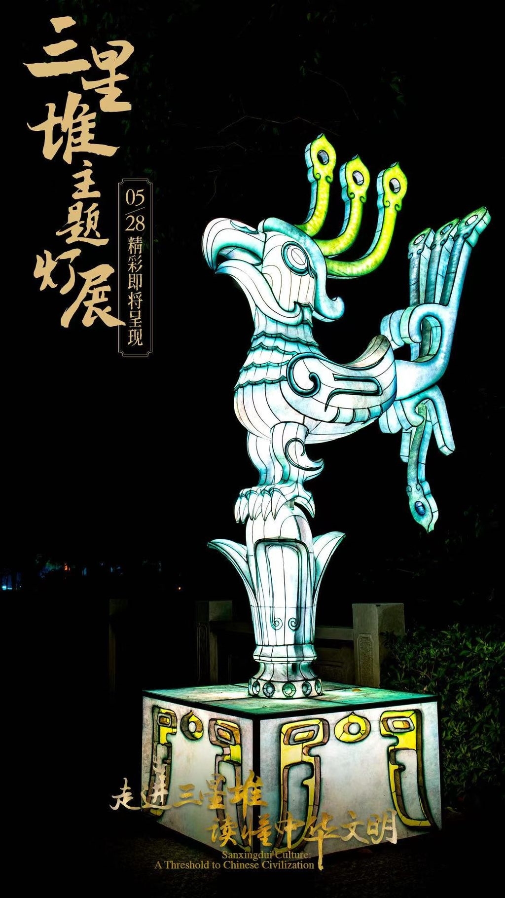 大立人、纵目面具……这些耳熟能详的三星堆宝贝统统化身精美绝伦的彩灯!