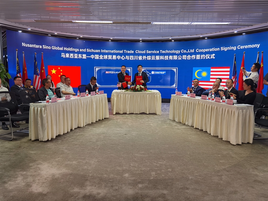 5月26日,四川商投集团下属企业四川省外综云服科技有限公司与马来西亚东盟-中国全球贸易中心举行网络签约仪式,双方将共建立中国-东盟跨境贸易综合服务平台,跨境贸易综合服务平台,促进跨境贸易、物流和供应链的融合和发展,并推动”国际清真认证中心”项目在中国境内落地。