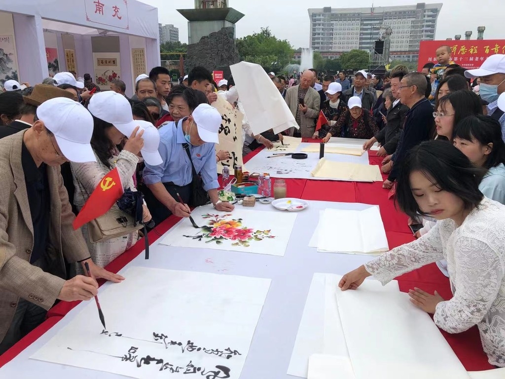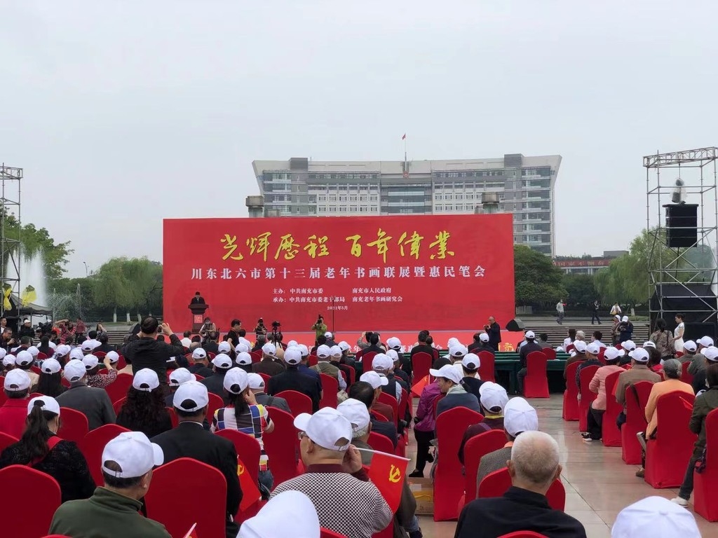 5月27日上午,“光辉历程·百年伟业”川东北六市第十三届老年书画联展暨惠民笔会在南充开幕。