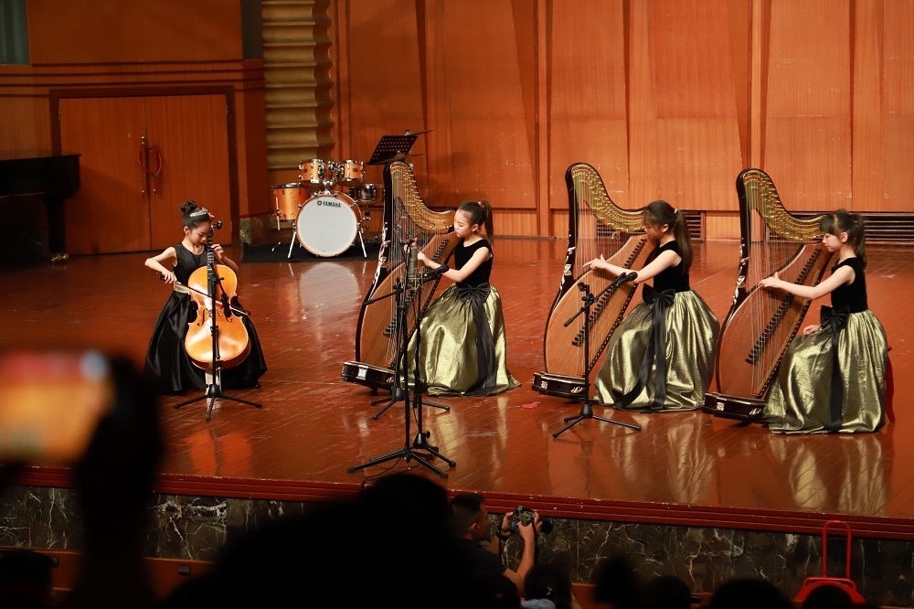 管乐合奏《乐队传奇》、《童年》,大提琴、小提琴合奏《我和我的祖国》;箜篌、长笛合奏《天鹅》、《圣母颂》,在这一场音乐会上,能够见到很多平日里罕见的乐器。演员都是学校的学生。据了解,很多孩子进入学校时是“零基础”,进入川音附小后,可以得到四川音乐学院专家学者的指点,因此会一门及以上乐器,成为学生们的标配。校长袁辉表示,艺术教育能够激发孩子们的潜力,让他们对生活充满热情,通过艺术教育,培养让孩子们健全的人格,促进学生的全面发展。袁辉说,给孩子们提供舞台,展示他们最优美的歌喉和舞姿,孩子们落落大方的展示,这是培养孩子们自信心的关键。