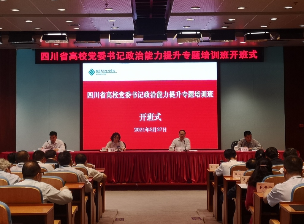 5月27日,四川省高校党委书记政治能力提升专题培训班在国家教育行政学院开班,全省公办普通高校党委书记,四川开放大学、四川科技职工大学党委书记等,共81人参加了开班式。