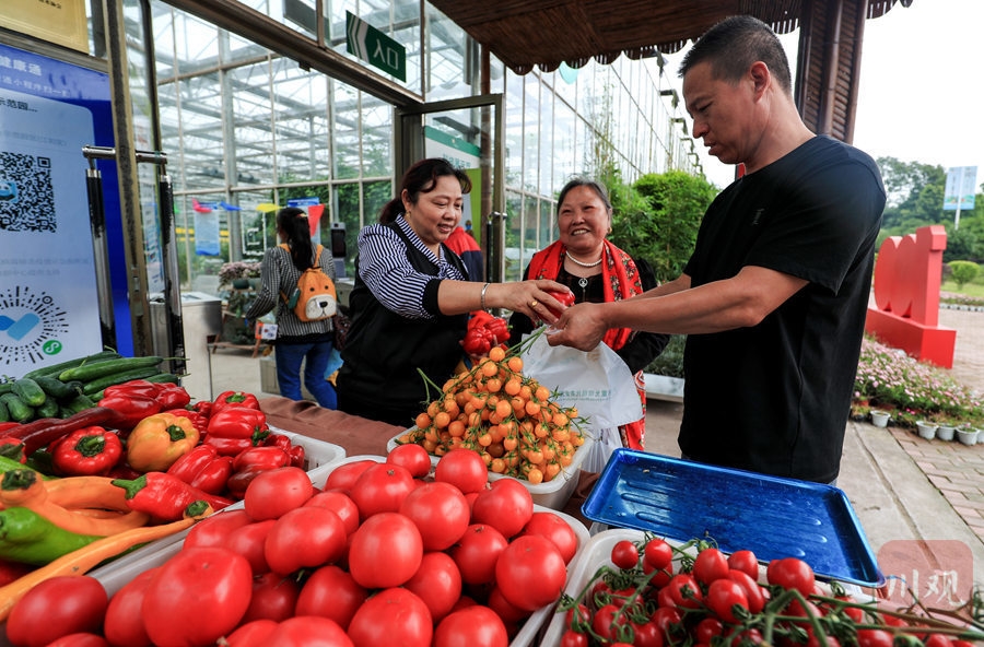 泸州市江阳区董允坝现代农业园区内,游人在购买“智慧蔬菜”。