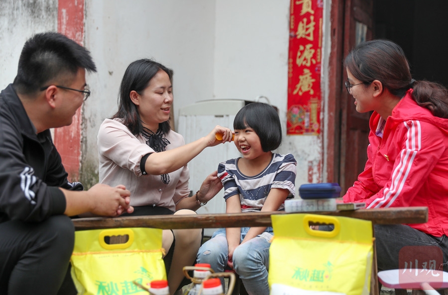 华蓥市的爱心人士在福利院看望慰问杨菊等孤儿,并赠送节日礼物。
