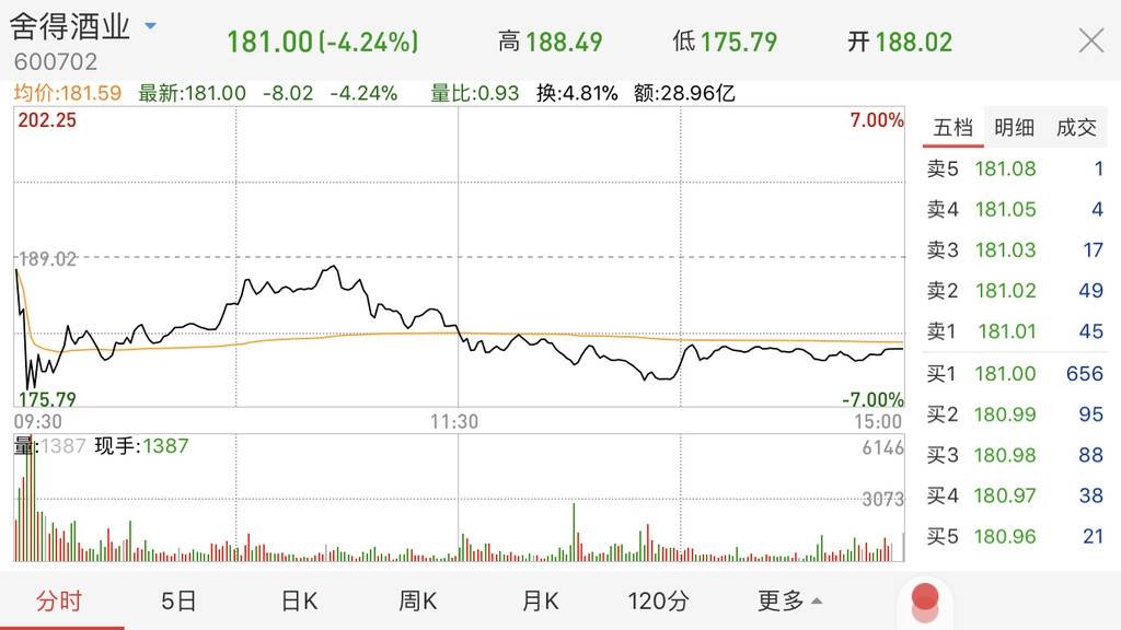 因为股价近期涨幅较大,于5月11日、20日、24日三次发布风险提示公告。提醒投资者注意投资风险。5月27日收盘,舍得酒业下跌4.24%,股价报181元。