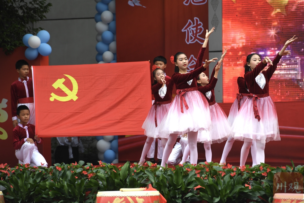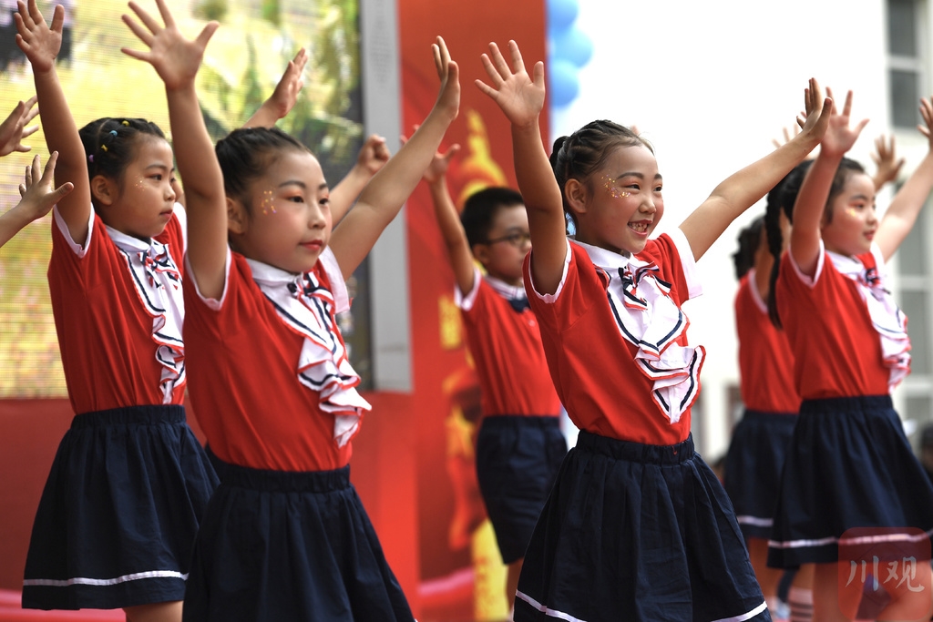 据了解,此次活动节目均由该校全体师生自编自导自演完成,孩子们用自己的方式,讴歌伟大时代的伟大成就,为党、为祖国献上最真挚的祝福。