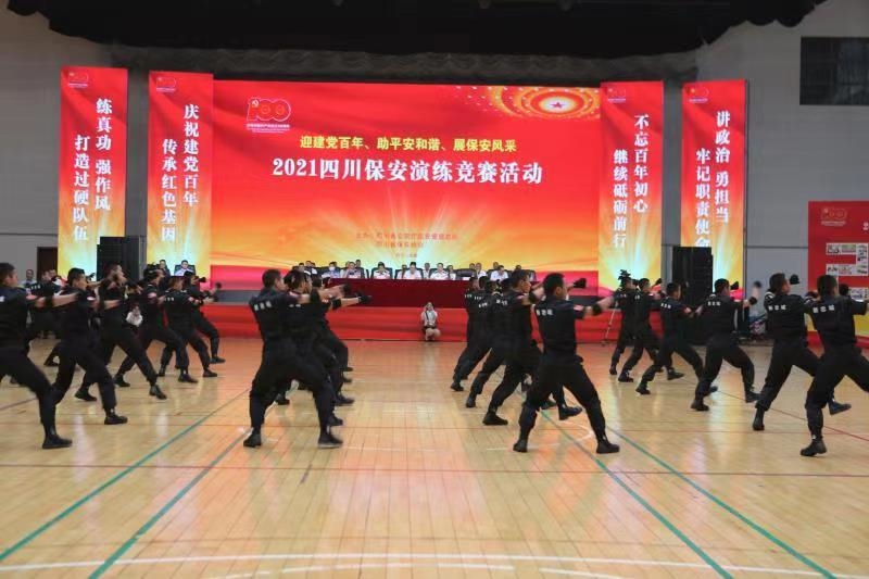 25月27日,四川省公安厅治安管理总队和四川省保安协会组织开展的四川保安行业“迎建党百年、助平安和谐、展保安风采”演练竞赛活动在成都举行。来自全省556家保安公司的10支演练、22支竞赛队伍的610名保安员代表全省50余万保安员,开展演练和技能竞赛。