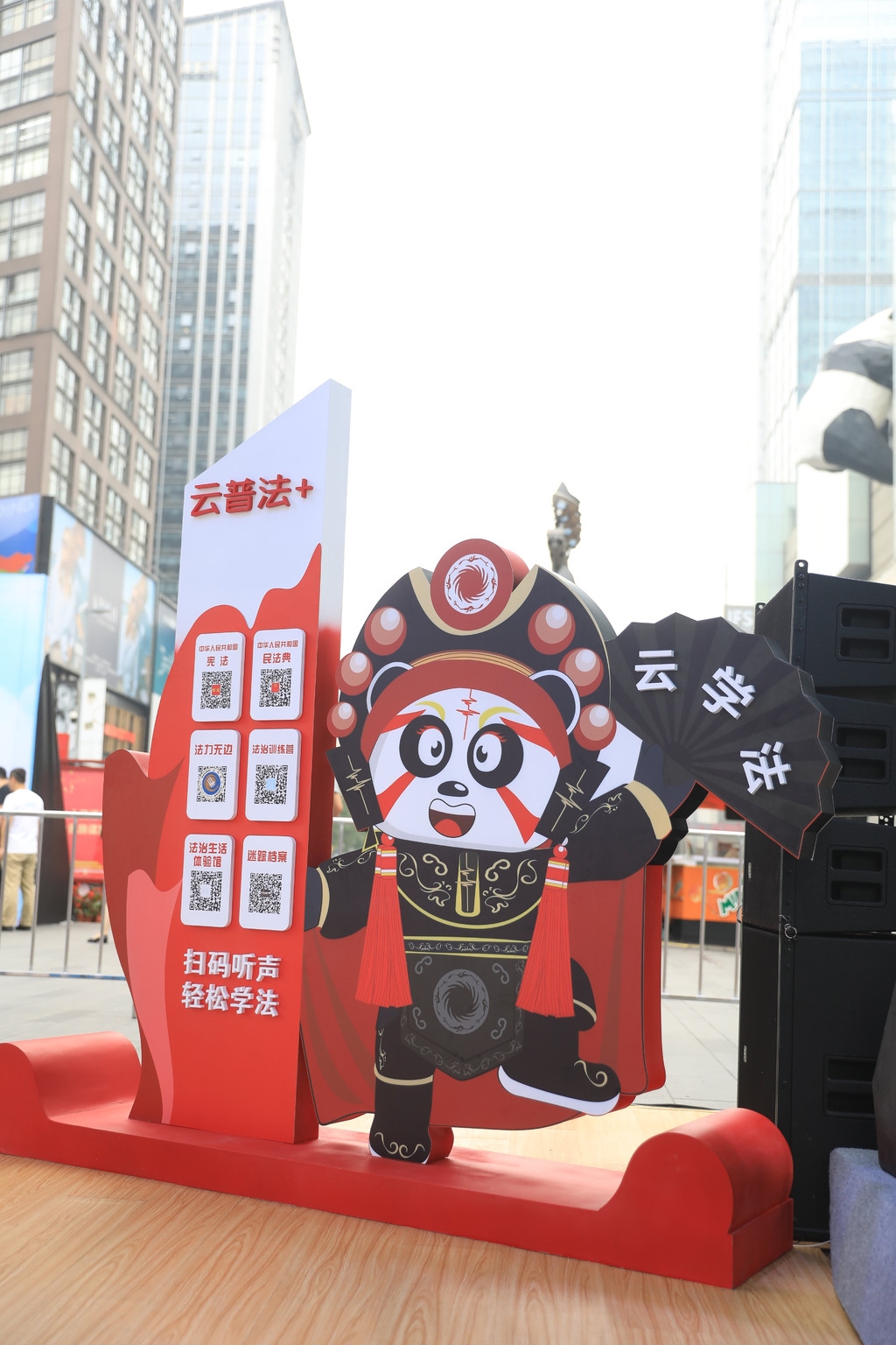 据悉,此次活动推出了成都市升级打造“云学法·云普法+”智慧普法平台2.0版本,其中包括了“云学法+”微信小程序。活泼可爱的普法熊猫嘟嘟玩偶、能够通过社交媒体发送的法治声音明信片、“云学法”手机端的H5互动游戏成为活动现场爆品,受到了现场群众、尤其是青少年的喜爱。记者在现场也亲身体验了一把“云学法·云学法+”智慧普法平台的魅力:只需要扫一下二维码登录微信小程序,或是说一句语音指令、点一点智慧大屏,就能与各类好听、好看、好玩的普法产品来一次“亲密接触”。
