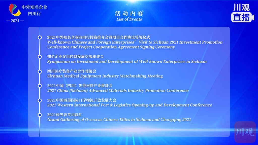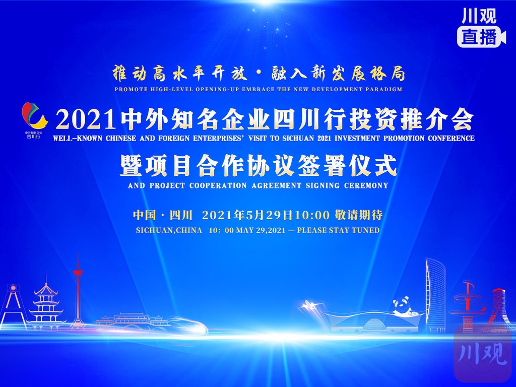 2021中外知名企业四川行投资推介会暨项目合作协议签署仪式,将于5月29日上午10:00在成都天府国际会议中心隆重举行。