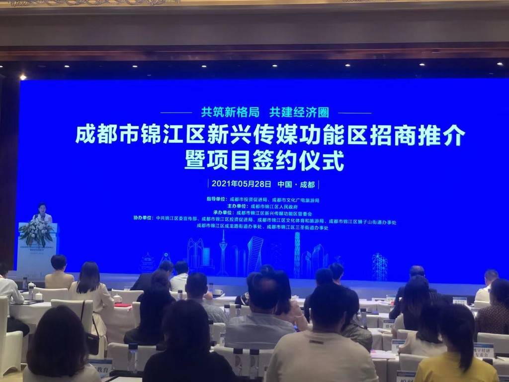5月28日,“共筑新格局 共建经济圈”成都市锦江区新兴传媒功能区招商推介暨项目签约仪式举行,签约金额超过122亿元,集中引进了6个优质的科技、文创项目。