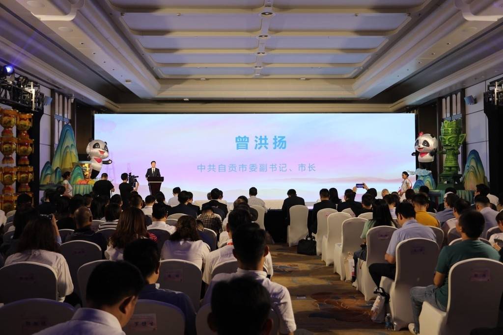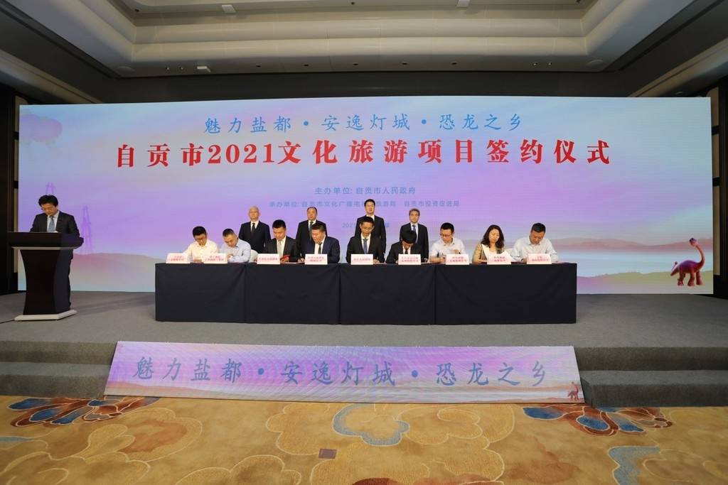 5月28日,“魅力盐都·安逸灯城·恐龙之乡”—自贡市2021文化旅游投资推介会暨项目签约仪式在成都举行。自贡现场签约深圳市新世纪(自贡)盐都星级酒店及总部经济、川南白果山种植旅游观光基地、潮漫风尚方特恐龙王国店、禅驿酒店自贡七彩城店、景悦酒店自贡七彩城店等5个重点文旅产业项目,总投资约17.5亿元,进一步补齐自贡文旅产业发展基础设施建设短板,强链条。